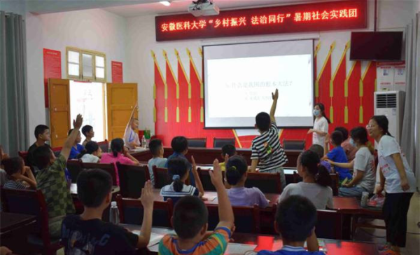 该校将普法宣传活动与大学生志愿服务活动以及暑期社会实践相结合,广大学子学以致用,是学习者,也是宣传员,更是扩大法治宣传教育覆盖面和影响力的践行者,让宪法及相关法律的知识内容以说得清、听得懂、学得会的方式走进基层人民群众。他们有的前往定远县法院、检察院开展以“与法同行、护佑成长”为主题的学习参观活动,见证基层司法机关在法治宣传中的工作成效。有的在暑期深入肥西县铭传乡等地开展专题调研和普法宣传,帮助当地小学生树立法律意识和安全意识,鼓励其做知法懂法守法的好少年。