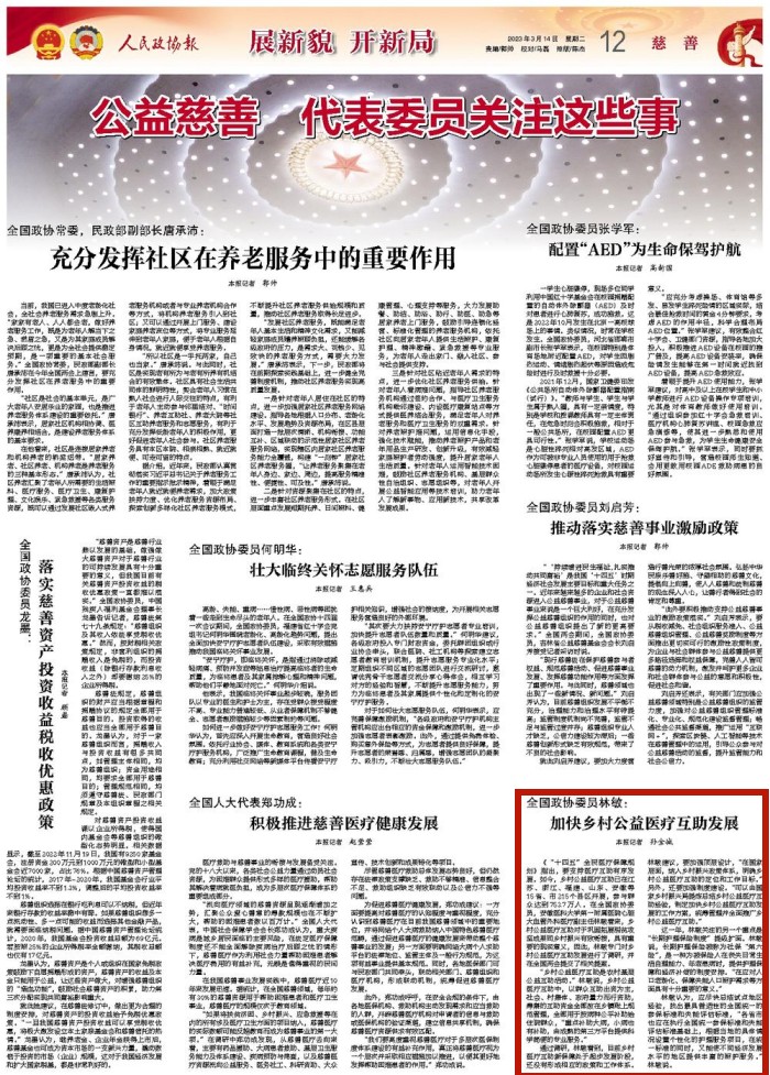 人民政协报:全国政协委员林敏: 加快乡村公益医疗互助发展