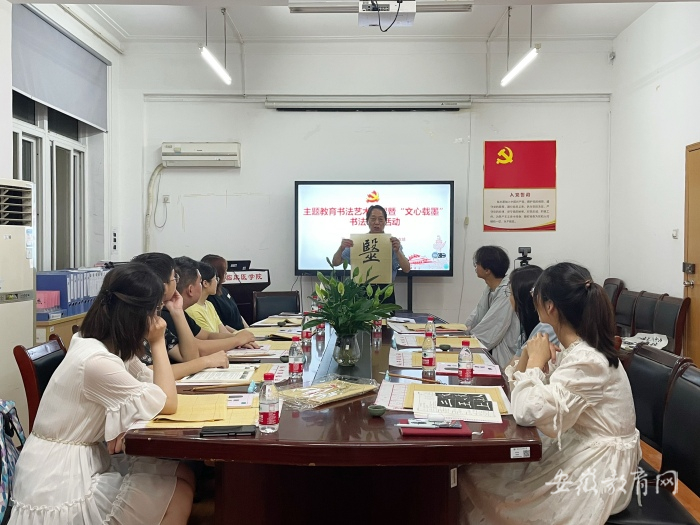 第一临床医学院举办主题教育书法艺术党课暨“文心载墨”书法研习活动,安徽省高等学校书法家协会副主席、校离退休干部杜继双应邀担任主讲人。他从“医”字的起源与演变、本意与引申义展开,结合自己创作的书法作品,勉励青年大学生要认真学习领会习近平总书记关于弘扬中华优秀传统文化的重要论述,不断坚定文化自信,做中华优秀传统文化的传播者和继承者,为“推进文化自信自强,铸就社会主义文化新辉煌”贡献青春力量。“杜老师的讲课让我对书法文化和医学美学有了新的认识,今后我将更加努力学习中华优秀传统文化,同时加强对党的二十大精神、党史等内容的政治理论学习,增强政治意识。”该院学生党员刘欢说。