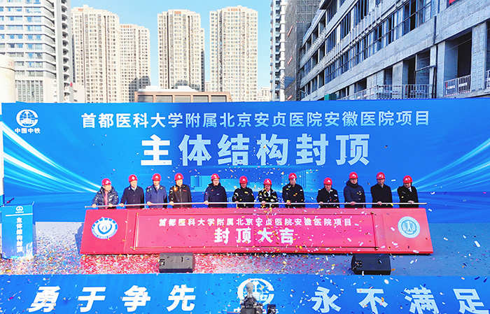 12月28日,首都医科大学附属北京安贞医院安徽医院主体结构顺利封顶。校长翁建平出席活动,并和与会领导共同推杆启动封顶。