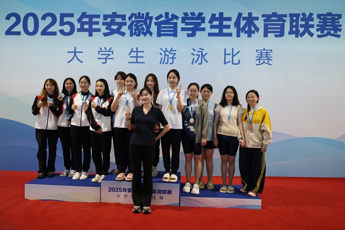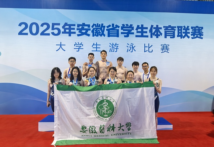 6月10日至13日,由安徽省教育厅、安徽省体育局主办,安徽省学校体育协会执行的安徽省学生体育联赛大学生游泳比赛在中国科学技术大学游泳馆举行。我校游泳健儿多次破省纪录,并取得优异成绩。其中,2021级临床医学专业杨昕玥同学在比赛中大放异彩,勇夺女子甲组100米蛙泳金牌,并打破该项目省大学生纪录,将纪录提高近七秒。