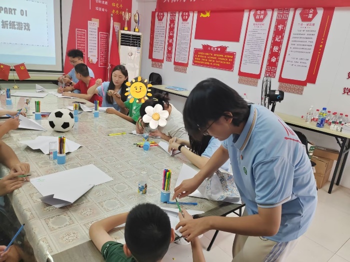 在合肥市庐阳区万小店社区,实践团针对孤独症儿童核心需求,依托医学专业特色定制康复训练课程。通过情景模拟科普烧伤、中暑、溺水等急救知识,帮助孩子们掌握基础技能;组织“教室大扫除”活动,引导他们在分工协作中提升自理能力;开展“色彩疗愈绘画”活动,引导孩子们用画笔勾勒心中所想。实践队员以温柔鼓励化解孩子们的羞涩,见证他们从“手把手教学”到“主动尝试”、从“低头躲闪”到“抬头微笑”的转变,见证他们绽放独特光彩。