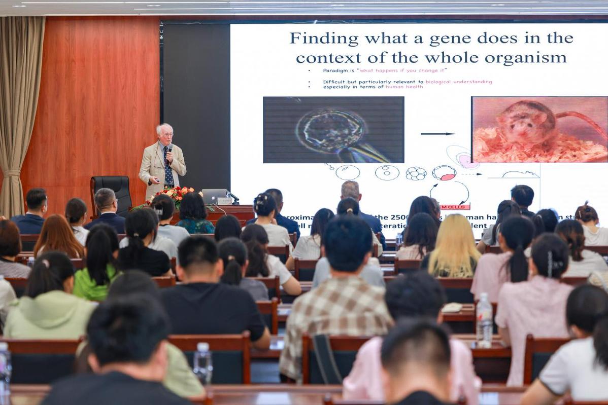 马丁·埃文斯爵士在报告中系统回顾了小鼠胚胎干细胞技术的研发历程,阐述了小鼠胚胎干细胞的发现、发展和作为基因遗传的载体所起到的作用。他提到,小鼠胚胎干细胞具有自我更新和不定向分化的特性,可以分化为多种细胞类型,通过基因编辑等手段对其进行修饰和控制,从而实现对基因功能和生物发育的研究。同时,他还回忆了自己获得诺贝尔奖的经历,激励青年教师和学子勇于向未知领域发起探索。
